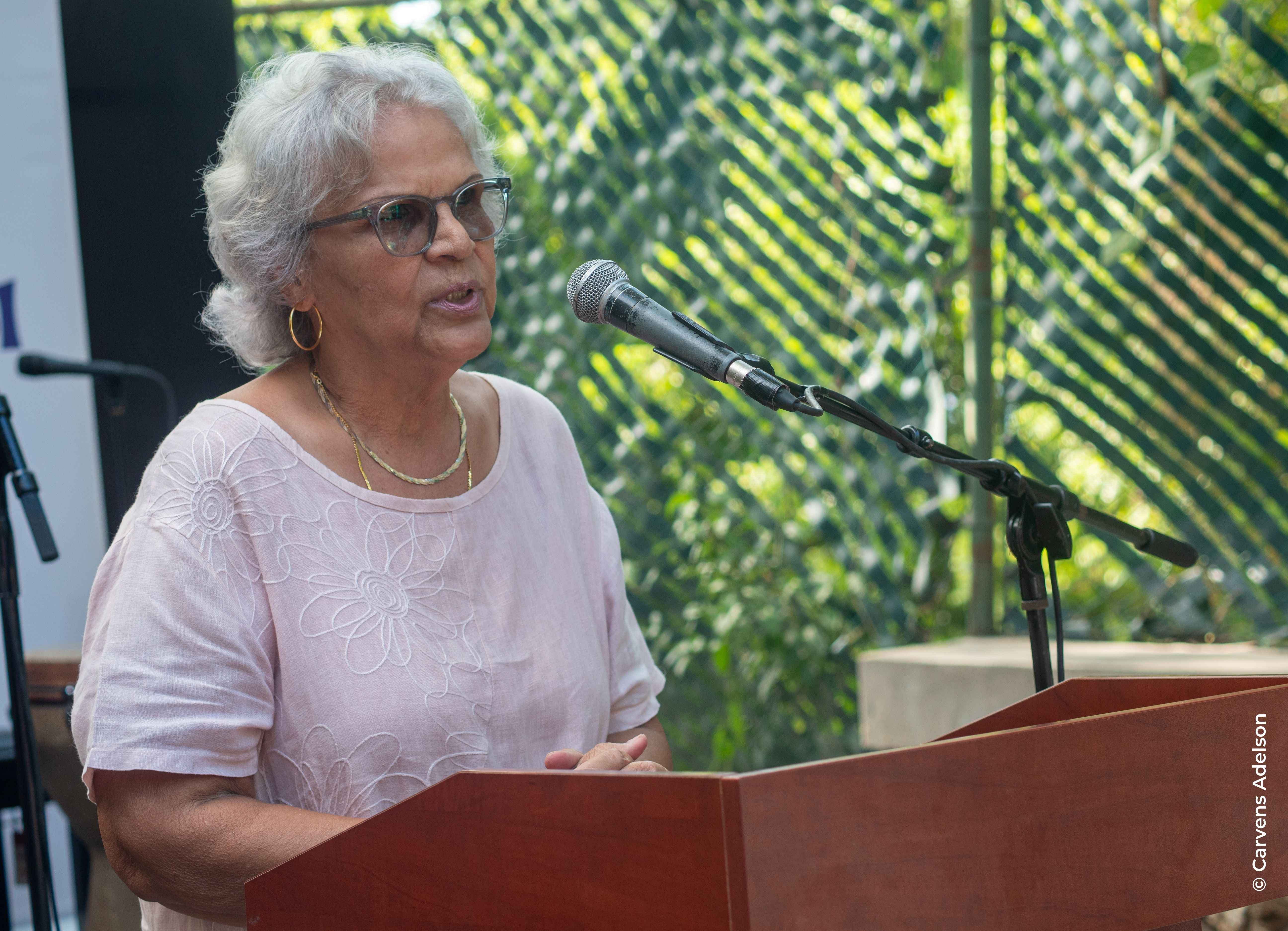 Prenant ensuite la parole, Michèle Duvivier Pierre-Louis est revenue sur l’histoire du festival, porté à ses débuts par FOKAL avant de devenir une structure indépendante conduite par Guy Régis Junior. Elle a mis en avant l’engagement remarquable de ce dernier, qui a su préserver cet espace de création dans des contextes particulièrement complexes. Elle s’est également réjouie de l’hommage rendu à Daniel Marcelin, figure incontournable du théâtre haïtien, ayant accompagné plusieurs générations d’artistes.